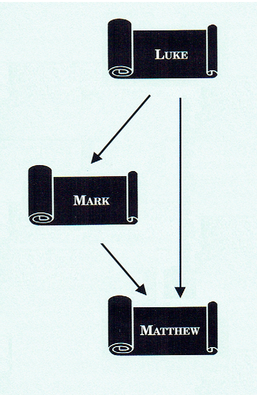 Eventually, with the help of a friend in England, Lindsey was able to obtain a detailed summary of Lockton’s article. Lindsey was struck by Lockton’s emphasis on the importance of the “minor agreements,” and especially by his analysis of Jesus’ eschatological discourse recorded in Luke 21, Mark 13 and Matthew 24. Lockton’s research was independent confirmation of the correctness of Lindsey’s theory that “Luke is first” and that the order of the writing of the Synoptic Gospels is Luke → Mark → Matthew.[4] Nevertheless, Lindsey’s hypothesis differed from Lockton’s in one significant respect: whereas Lockton believed that Mark and Matthew had copied Luke, Lindsey believed that the author of Matthew had no knowledge of Luke, but rather depended on one of Luke’s sources.