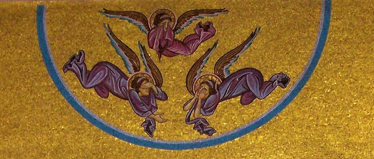 Angels weep at the burial of Jesus in a mosaic from the Church of the Holy Sepulchre in Jerusalem. Photo courtesy of Joshua N. Tilton.