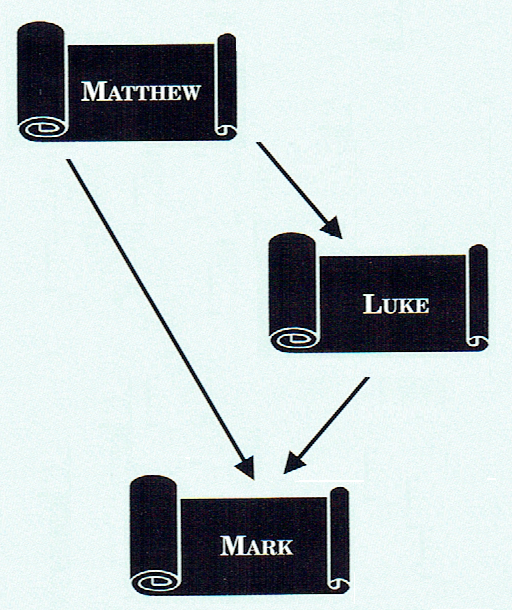 According to this view Luke is the oldest Gospel, which the author of Mark used as the basis of his Gospel. The author of Mark was highly selective, choosing only some of the stories he read in Luke, and he was also highly creative, recasting the stories he selected in his own words. The author of Matthew used the Gospel of Mark as one of his main sources. He never knew of the existence of Luke, but he did have one of the sources the author Luke had utilized when writing his Gospel. In this way Matthew was able to restore some of the same stories that had been in Luke that Mark had omitted and he was able to restore some of the original wording of the stories Mark had rewritten (i.e., the minor agreements).