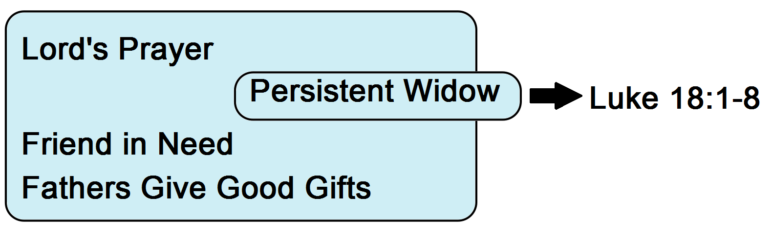 - Cf. Montefiore, 118; Cadbury, Making, 233; Knox, 2:60-61. Bivin and Tilton owe the suggestion that the Lord’s Prayer, Persistent Widow, Friend in Need, and Fathers Give Good Gifts pericopae all belonged to a narrative-sayings complex on prayer to Robert Lindsey. See Lindsey, JRL, 111-113. ↩