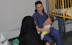 A Palestinian baby injured in a car accident last year was breastfed by a Jewish ER nurse after he refused to take a bottle. The baby’s mother had sustained a serious head injury and his aunts asked the nurse, Ula Ostrowski-Zak, to help find someone to nurse him. Ula volunteered. “I breastfed him like I do my own son….I’m here all night. It seemed so straightforward,” she told Ynet news at the time. (Photo: Hadassah Hospital Spokesperson)