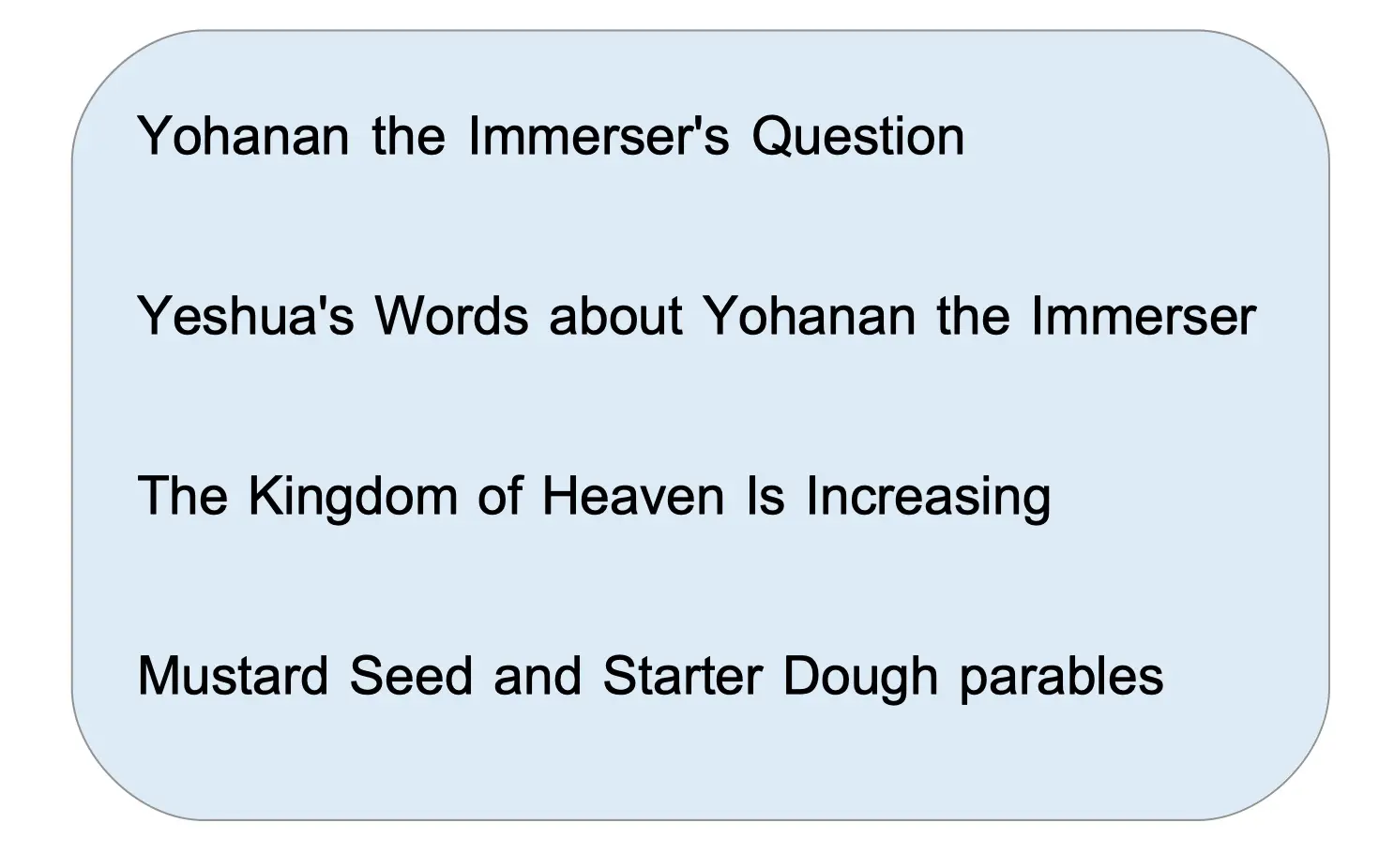 Click here to read an introduction to the “Yohanan the Immerser and the Kingdom of Heaven” complex.