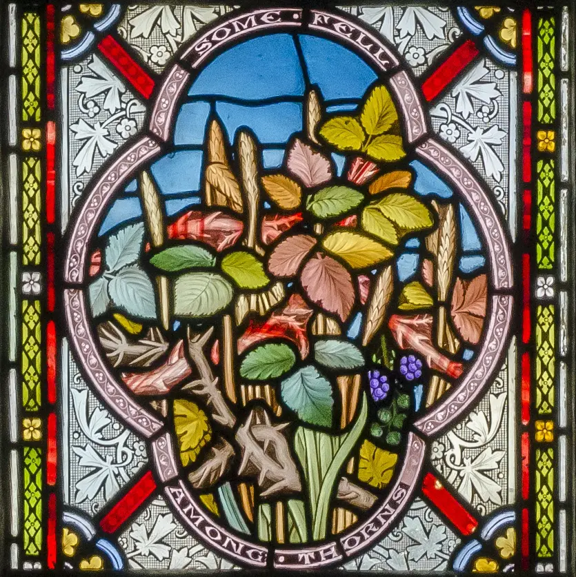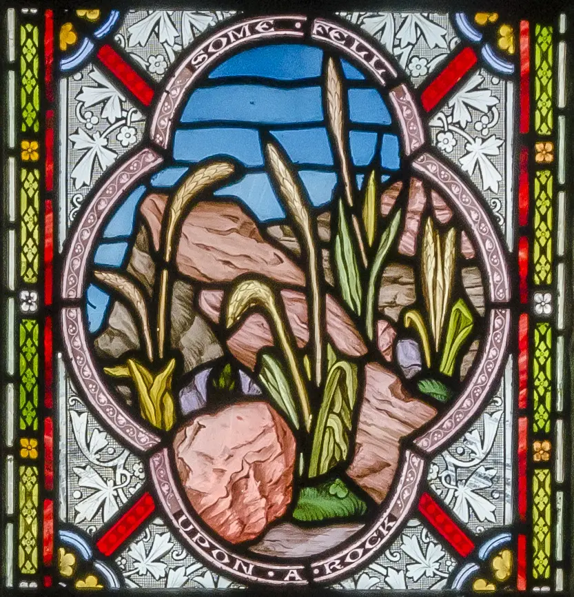 This is the parable: The seed is the word of God. Those [which fell] on the path are those who hear [the word] and then Satan comes and takes [it] from their hearts. Those [which fell] upon the stone are those who hear [the word] and receive [it] with joy but have no root. Those [which fell] among the thorns are those who hear [the word] but because of concerns and riches, go and are choked and do not bear fruit. Those [which fell] in the good soil are those who hear with a good heart, receiving and bearing fruit.[6]