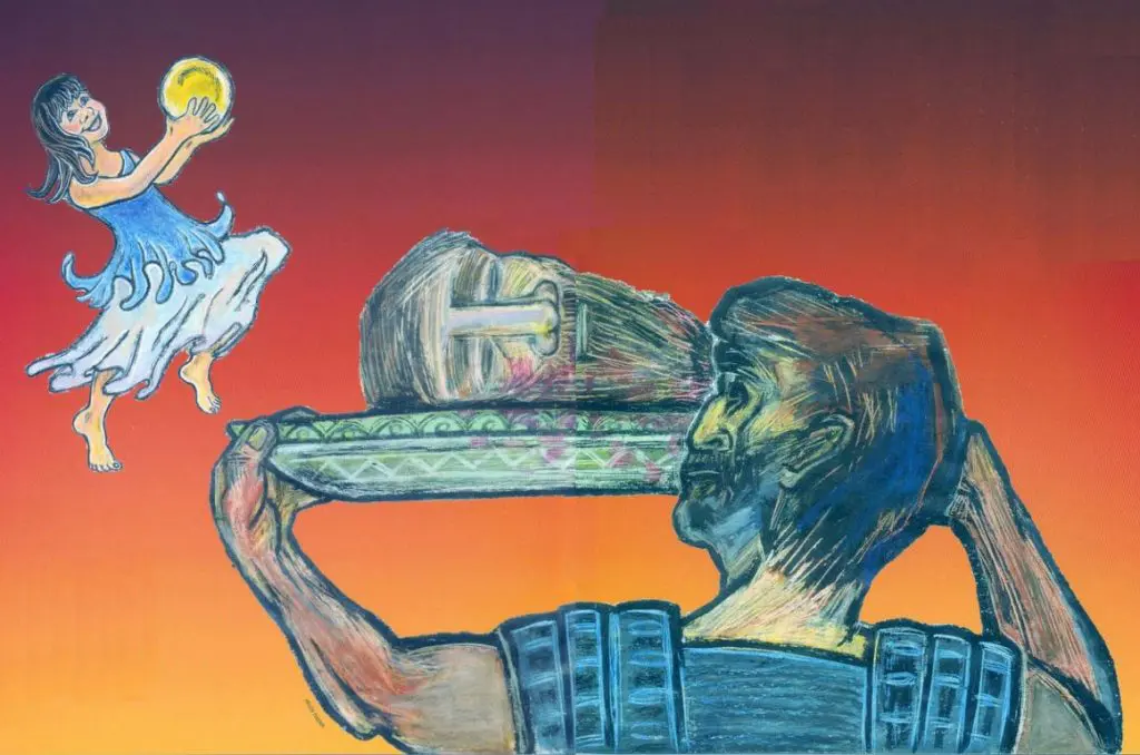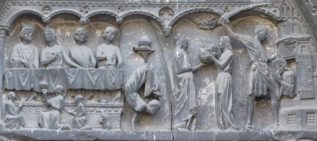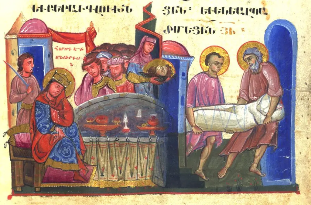 The executioner went, cut off the Immerser’s head in the prison, and brought it back on a tray and gave it to the girl, who brought it to her mother.