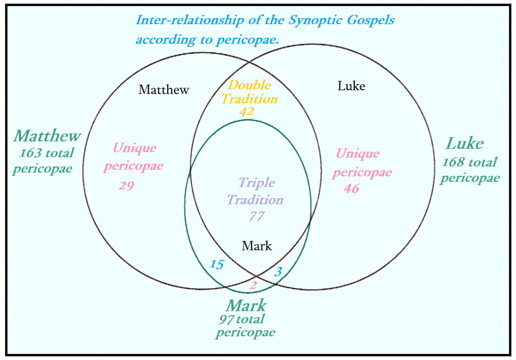 This important observation can be summarized in the following two sentences. While the Triple Tradition shows close agreement between Matthew and Luke in the order of pericopae, it shows low agreement in verbal identity. While the Double Tradition shows little agreement between Matthew and Luke in the order of pericopae, it shows high agreement in verbal identity.