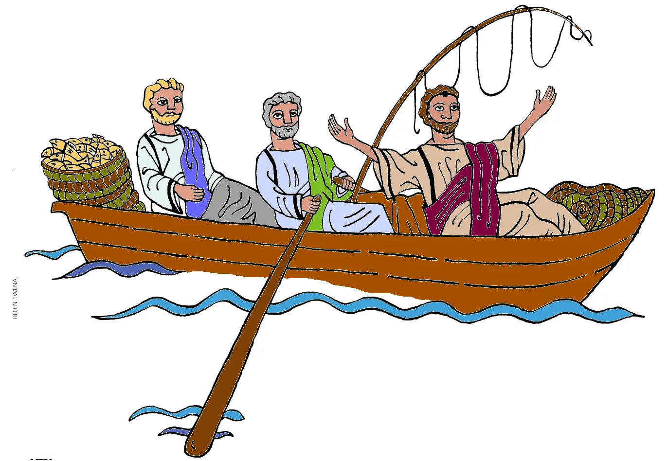 | cast | carried by four | a man who was paralyzed |