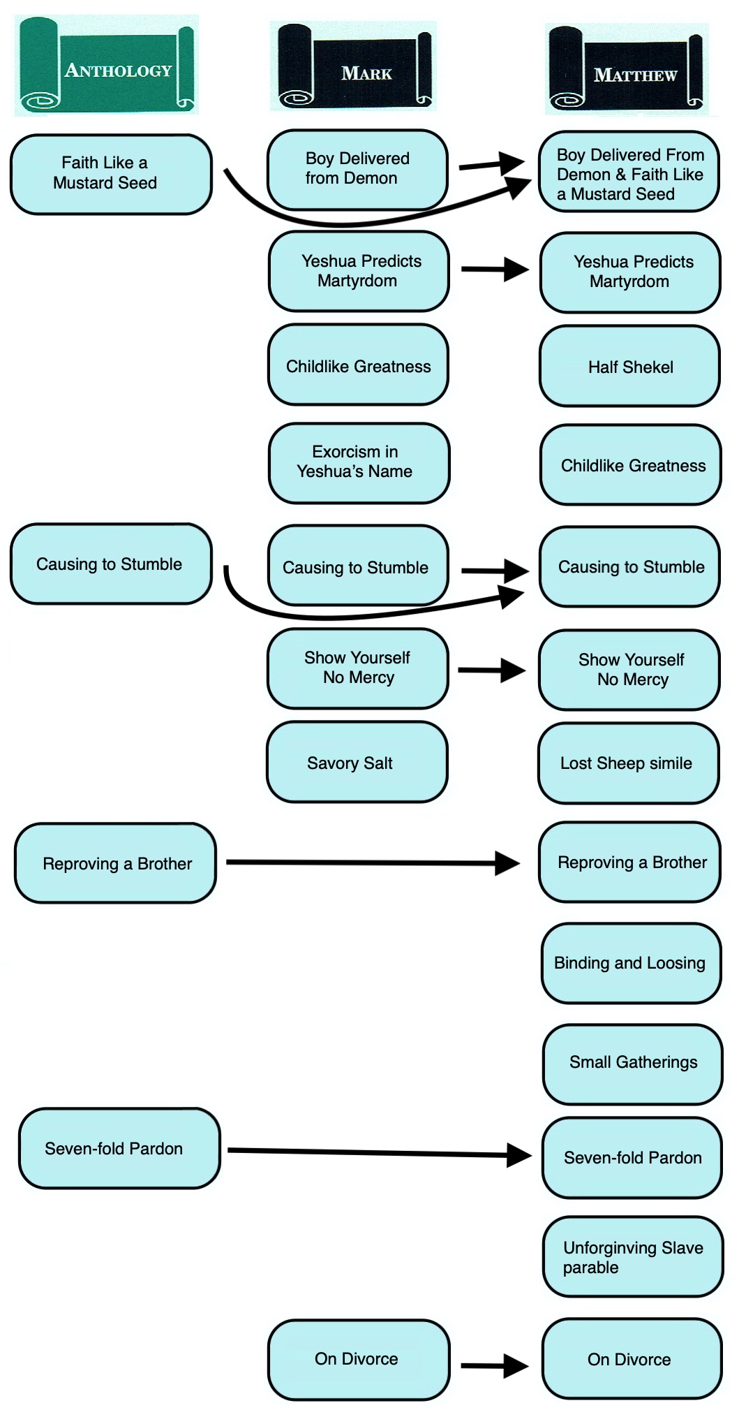 | FR “String of Pearls” | Anth. Doublet | Non-Markan Matthean Parallel |