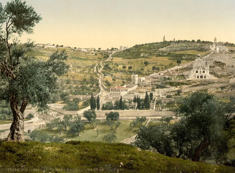 The place where these events transpired was in a garden across the Kidron Valley east of Jerusalem (John 18:1), on the Mount of Olives (Luke 19:39), in an area known as Gethsemane (Matt 26:36; Mark 14:32). Gethsemane is Hebrew for “oil press,” and so this place must have served the farmers who owned the olive groves on the western slopes of the Mount of Olives. Busy in the fall and winter seasons following the olive harvest, the area proved a suitable place for retreat during the springtime when Jesus visited Jerusalem for Passover. Apparently, Jesus came here regularly, perhaps sleeping here each night in the week leading up to his crucifixion (Luke 21:37; 22:39). This likely explains two interesting features of the narratives: how Judas knew to find Jesus here, and why the disciples felt no concern at falling asleep.