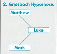 According to Lindsey, Matthew and Luke, and perhaps Mark as well, were acquainted with an anthology of Jesus’ words and deeds taken from the Greek translation of the Hebrew biography. Luke alone was acquainted with a second source, a Greek biography which attempted to reconstruct the story order of the original Hebrew text and its Greek translation. Mark used Luke while only rarely if at all referring to the anthology, while Matthew used Mark and the anthology. Luke and Matthew did not know each other’s Gospels, but independently used the anthology. As in the more popular Two-Document Hypothesis, Mark is the middle term between Matthew and Luke.