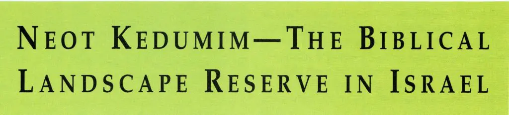 “Neot” means pastures or places of beauty (as in Ps. 23, “He makes me lie down in green pastures”). “Kedumim” meaning ancient, also contains the Hebrew root that indicates forward motion in time, and expresses the biblical landscape reserve’s underlying philosophy of future growth based on understanding of past roots.
