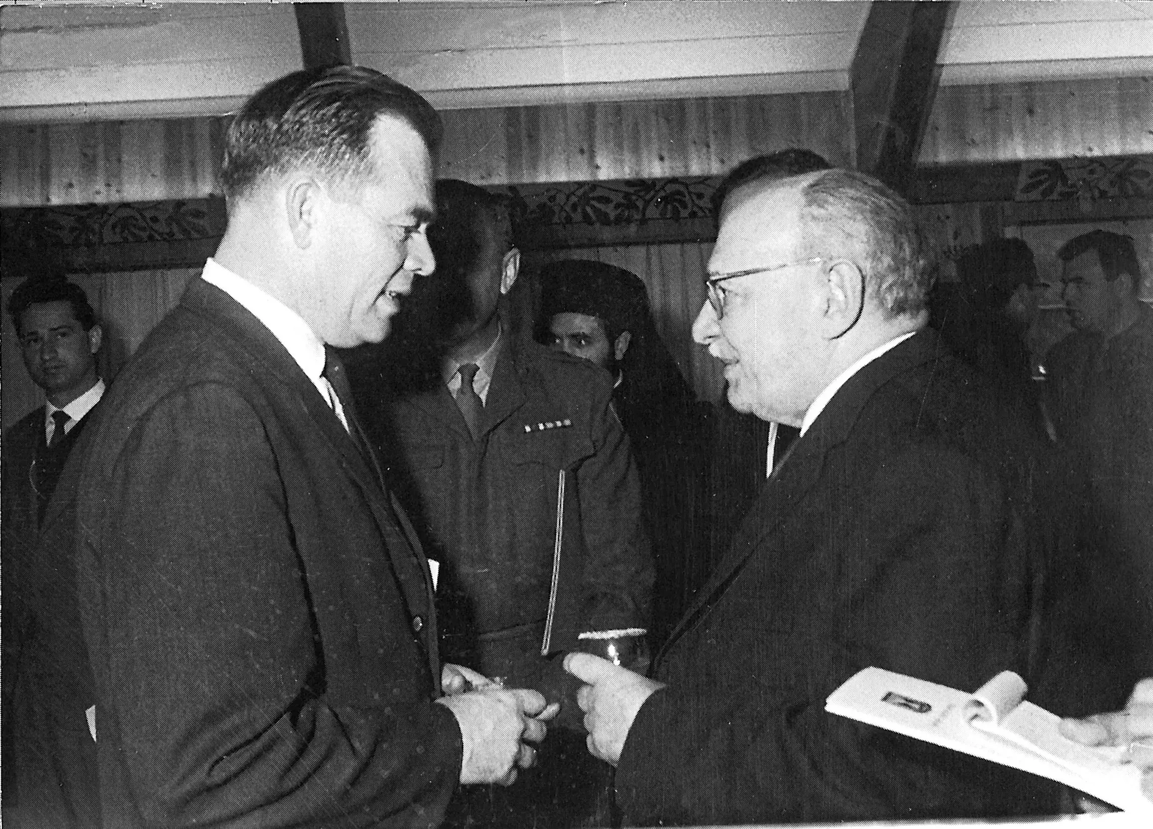 Lindsey exchanges a few words with Zalman Shazar, Israel’s third president, at a reception given by the president for Christian clergy (Jerusalem, circa 1964).