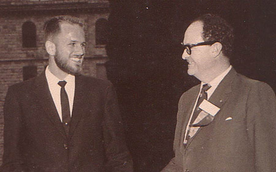 Before….I stand with Mr. Bar-Gur (then, in 1964, president of the Jerusalem Rotary Club) outside the Jerusalem YMCA where the Jerusalem Rotarians held their weekly meetings. Thanks to a post-graduate fellowship awarded to me by Rotary International, I was able to come to Israel. (I owe Rotarians a great debt!) When this photo was taken, I was twenty-four years old.