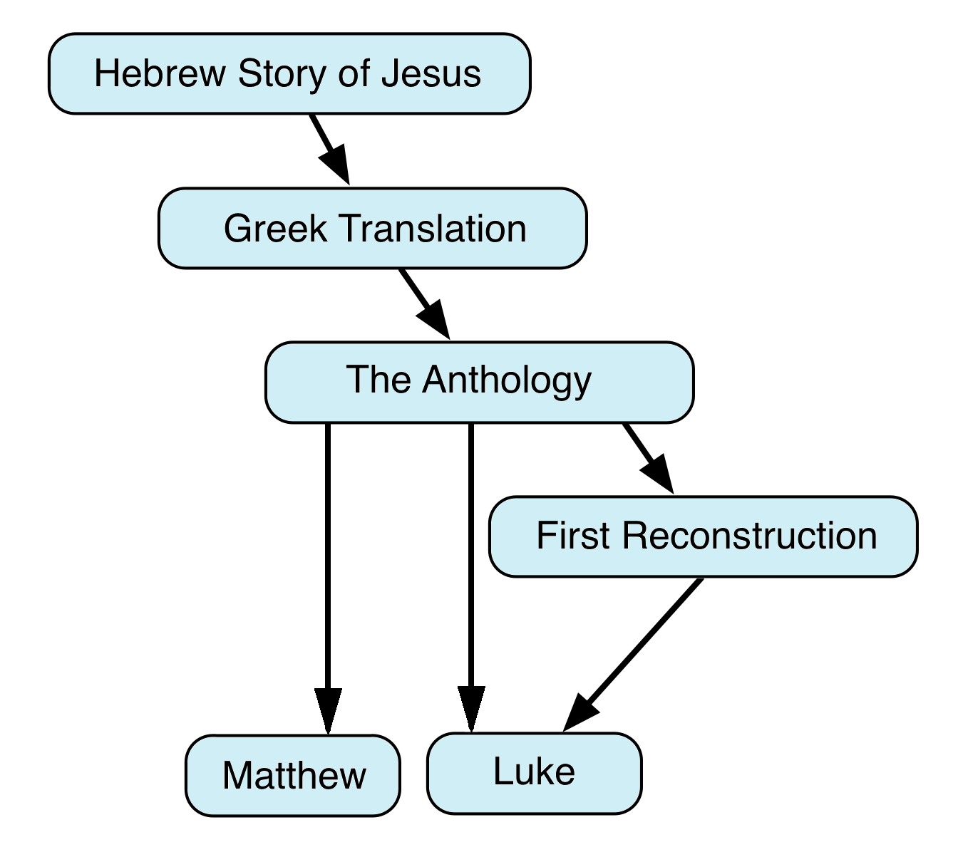 Our statement above that the author of Luke copied the block of material on prayer that comprises Luke 11:1-13 from Anth., must be modified slightly. It appears that for the text of the prayer itself (Luke 11:2b-4) the author of Luke relied instead upon the First Reconstruction (FR), since, compared to Matthew’s version of the Lord’s Prayer, Luke’s version is much less Hebraic[4] and far more congenial to a non-Jewish, Greek-speaking audience.[5]