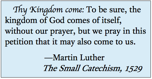 Our Father who is in heaven, may your name be sanctified, may your Kingdom come, may your will be done, as in heaven also upon earth. Our daily bread give to us today, and forgive us our debt as we forgive our debtors, and do not lead us into temptation, but rescue us from the evil, because yours are the power and glory into eternity. (Did. 8:2)