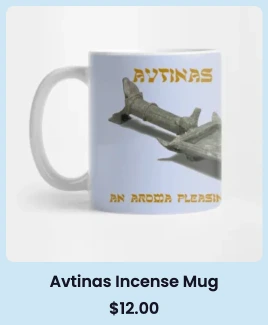 To purchase an Avtinas Incense mug, sticker, magnet, tee shirt, etc., click on the icon to the right or visit the JP Dashery store at the following link: https://jerusalemperspective.dashery.com/products/83656529-avtinas-incense-mug. |